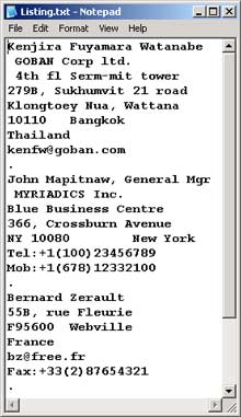 The example is a listing of contact names and addresses each separated from the next by a single dot character.