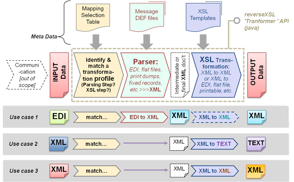 The TransformerFactory provides means to enforce a specific transformation profile comprising none, one or both of a Parsing step, followed by an XSL Transformation step. But by default, the TransformerFactory will load a Mapping Decision Table and dynamically match input messages against an adequate transformation profile.